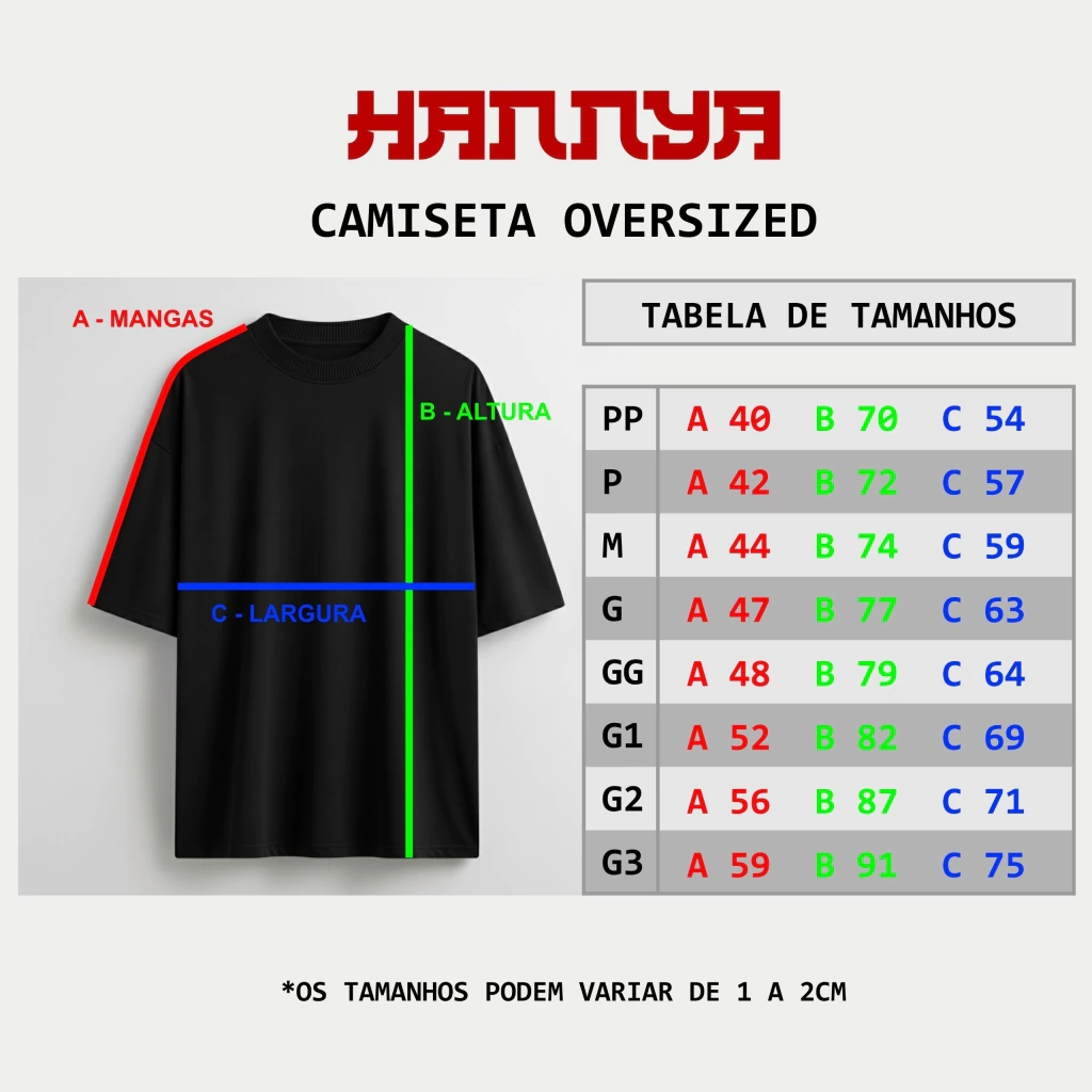 A Camiseta Oversized Hannya foi criada para quem busca estilo, conforto e qualidade em cada detalhe. Disponível em duas opções de tecido premium, você escolhe a que combina mais com seu dia a dia e com o seu estilo.